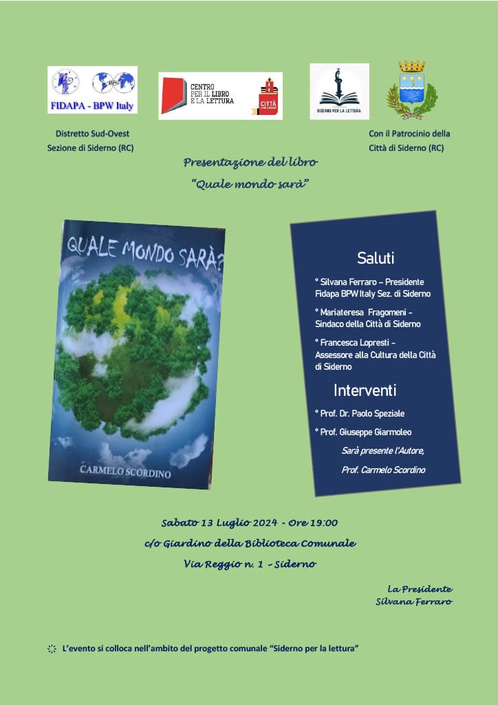 “Quale mondo sarà”. Il docente e divulgatore scientifico incontra i lettori insieme alla Fidapa BPW Italy – Sezione di Siderno per presentare il suo apprezzatissimo saggio.